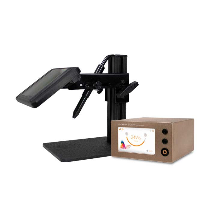 The Orion mPulse 30J pulse arc welder is an easy-to-use production powerhouse built with leading-edge technology. The Dual Zone Power Range™ lets you select up to 15 joules in half-joule increments, perfect for permanent jewelry and small repair applications. For jobs that require more than 15 joules, you can adjust your energy settings in full-joule increments up to 30 joules. Plus, fire with enhanced precision using the included Tru-Fire Technology™, offering fewer misfires and improved welding consistency while the welder adjusts energy flow according to the strength of the ground at low energy levels.Whether traveling for pop-up events or looking to save space in your studio, the welder can be placed horizontally or vertically, offering you an adaptable footprint. Its front-facing stylus and grounding ports allow you to quickly connect and disconnect from the welder as needed. Manage your cables easily with the built-in power supply, making transport quick and efficient.The upgraded ADL features a spacious, clear 4”W x 6”L viewing screen and 5X magnification, making your welding tasks easier to see. Enjoy an adjustable stand for more space for your tasks when needed.