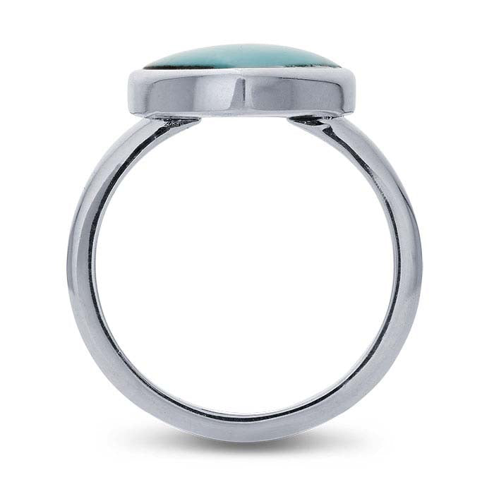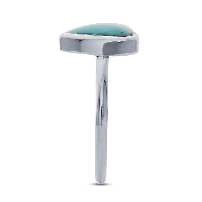 Este anillo de plata de ley está engastado con un cabujón de turquesa de imitación en forma de trillón. Es atractivo como accesorio independiente o apilado en combinación con otros anillos. Ofrezca a los clientes una variedad de estilos de anillos apilables para mezclar y combinar, y anímelos a crear sus propios diseños intercambiables.