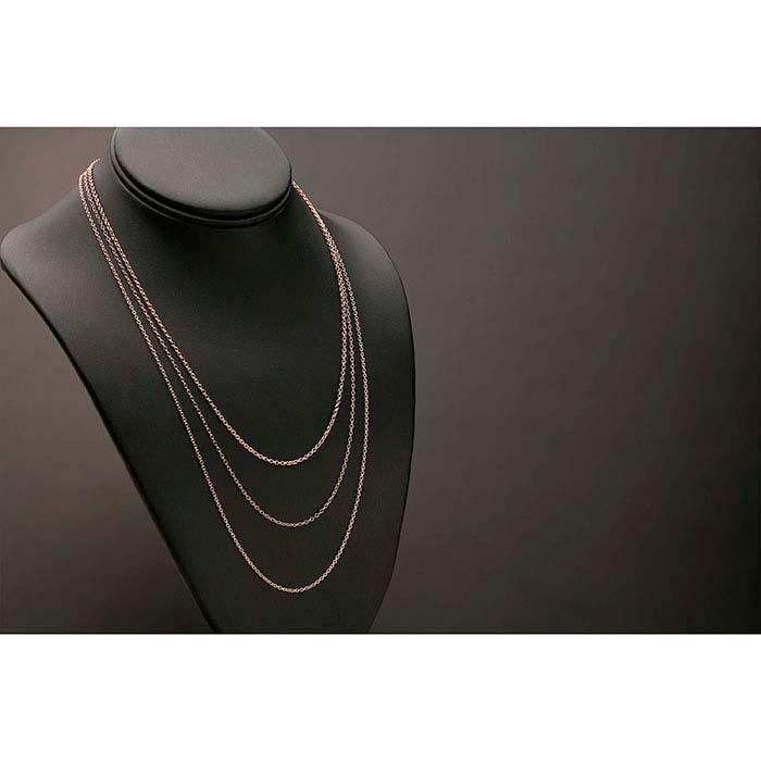 Korusuunnittelun peruspilari, tämä 14 karaatin ruusukultainen ovaali kaapeliketju antaa asiakkaillesi klassisen ilmeen ja ruusuisen sävyn, joka sopii erinomaisesti pienille riipuksille, tippoille ja koristeille.