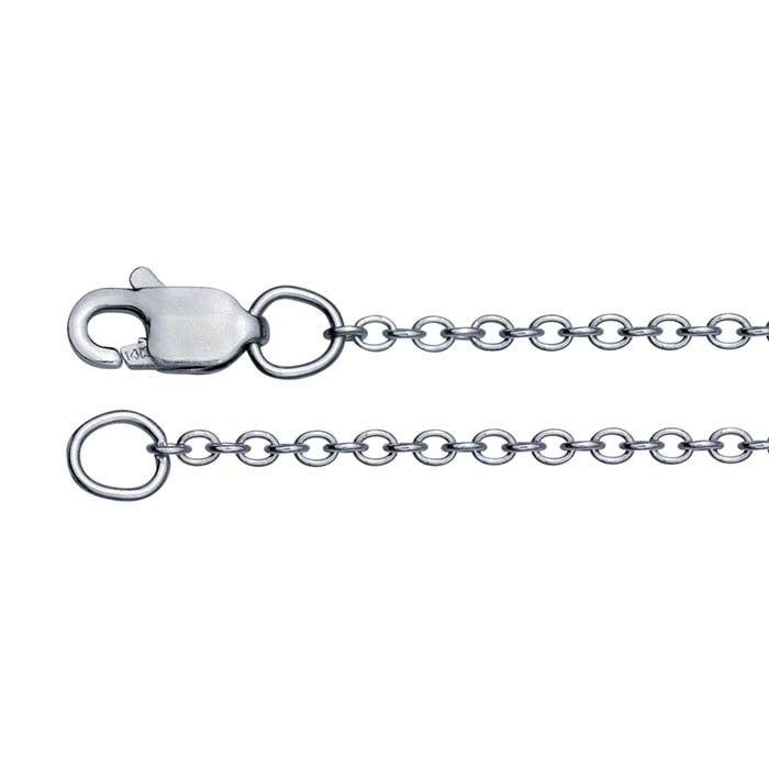 Tämä 14 karaatin valkokultainen ovaali kaapeliketju tarjoaa monipuolisen, kiillotetun tyylin mihin tahansa valkometalliin sopivaan riipukseen tai koristeeseen. Ketju on rodinoitu kestävän ja tummumista estävän pinnan varmistamiseksi.