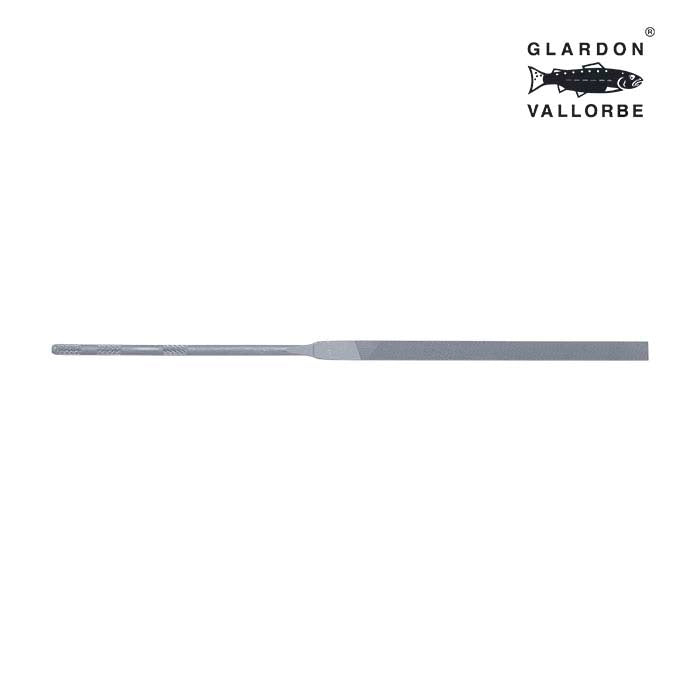 This Glardon Vallorbe® equalling needle file is ideal for shaping slots and corners, for smoothing and refining flat surfaces and for shaping openings. The file is flat with parallel sides and edges; this double-cut file has teeth on all four surfaces. This file has a Swiss cut #0; Swiss-cut files are graded by the number of teeth, counting teeth perpendicular to the long axis of the file. In all cut styles, the higher the number, the finer its cut. A double-cut file features two sets of evenly spaced teeth set in two directions, one at a slightly different angle than the other. Double-cut files are designed to cut more aggressively, maximizing the work of each stroke to remove more metal with fewer strokes. At the end of the stroke, the file should be lifted from the workpiece and repositioned for the next stroke; dragging the file backward against the metal can mar the metal and damage the teeth. Needle files feature a miniature profile with a shorter cutting surface (typically about half their length) and round, narrow handles. These small files are ideal for working on fine details and in small areas of the workpiece; they're ideal when access and surface finish take priority over metal removal. Though they can be used as-is, securing the file in a handle (available separately) improves control for better precision and tool safety. The first choice for most jewelers, Glardon Vallorbe® files are manufactured to the highest production standards, made in Switzerland of the finest heat-tempered chrome-alloy steel, hardened to 65 HRC. The files are precision-ground to cut quickly and accurately and to last longer than just about any other file on the market.