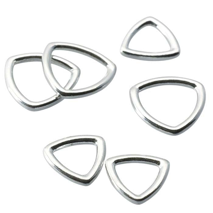 This sterling silver closed ring offers a subtly rounded trillion shape and has a substantial, sturdy look that matches the ring's function; because it is cast, it is perfect for connection points that need extra strength. Closed rings have no opening and are ideal as attach rings for clasps, as end rings on strung or wire-wrapped pendants, drop or dangle designs, or as connecting rings between fabricated or metal-formed links and components. A closed ring presents a strong, smooth finish with no joint and no need to solder.
