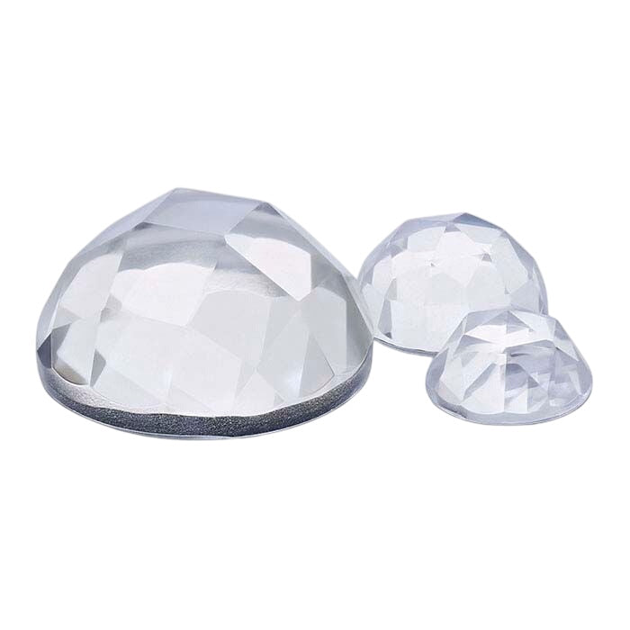 This round rose-cut white topaz is a great choice for designs that call for a hard white gemstone with a vintage look. The bright-white color means that it is complements nearly any gem. White topaz is valued for its brilliant white color and economical price. Because it is a natural gemstone, it may contain natural impurities and presents a level of fire more similar to that of a diamond than does a lab-created gem. This faceted gemstone offers a bright, eye-clean clarity. Topaz is one of the birthstones for November. A hard, usually transparent aluminum silicate gem material, topaz has a brilliance that rivals more expensive gemstones, making it an economical alternative to more costly gems. An "8" on the Mohs scale, topaz is tough and durable, ideal for all types of jewelry. Topaz forms in an orthorhombic structure with crystals that are usually prismatic. Pure topaz is colorless; impurities give the gemstone color. Gemstones can appear in a range of colors, with natural pink being the rarest. Most topaz colors are heat-treated or irradiated to enhance their color. In folklore, this gemstone is believed to dispel sadness and fear, to ward off poisons and to reverse infertility. A favorite of yesteryear, this rose-cut faceting features a flat base (no pavilion) and a crown made up of triangular facets.