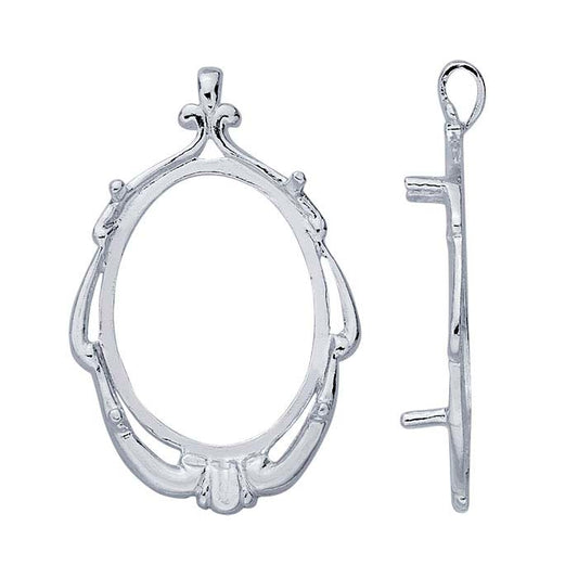 Sterling Silver 25 x 18mm Oval Victorian Cabochon Pendant Mounting