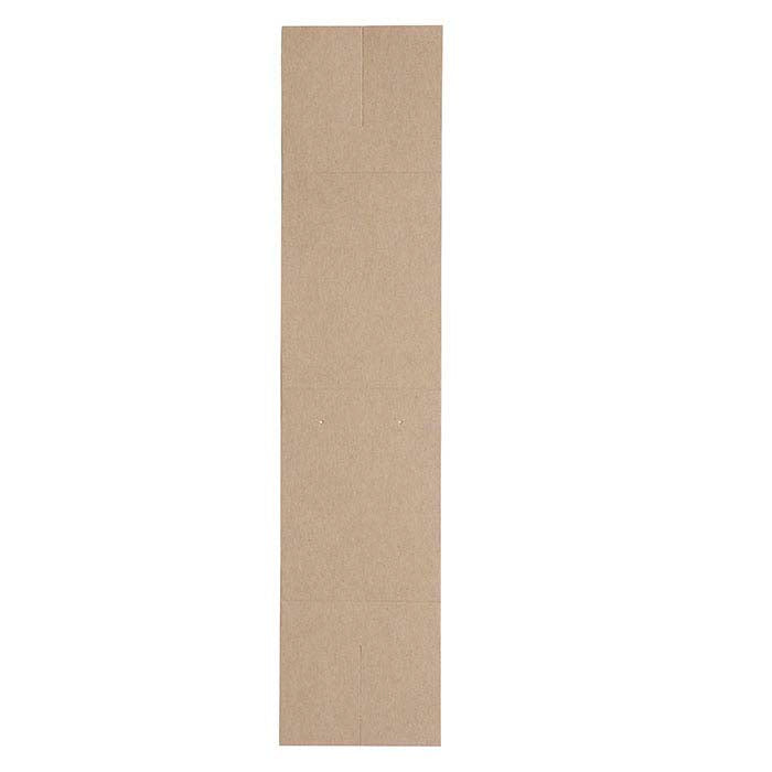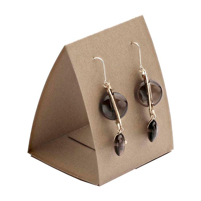 Tämä monikäyttöinen telttakortti toimii sekä esittely- että pakkausosana. Kortti toimitetaan litteänä; taita vain viivoitettujen taitosten kohdalta luodaksesi itsenäisesti seisovia kolmiosaisia korvakorujen esittelytelineitä. Myynnin viimeistämiseksi taita kortti litteäksi ja aseta se 3-1/2" x 3-1/2" puuvillalla täytettyyn laatikkoon (myydään erikseen). Kortti on valmistettu kraft-värisestä, teksturoidusta kartongista (80 lb./ happovapaa; 30 % kierrätyskuituja); siinä on 2" leveä, vakaa pohja.