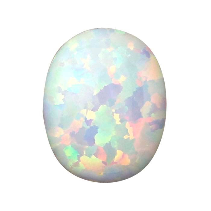 This simulated white opal cabochon features an attractive multicolor glow and is ideal for a variety of designs. Created in a lab and stabilized with plastic, this gemstone should not be exposed to direct heat sources. Opal is one of the birthstones for October.Simulated opal is an economical alternative to natural opal, offering a durability that makes it easier to work with and expanding your creative options. It's ideal for jewelry designs that are subject to wear and tear, such as bracelets and rings.