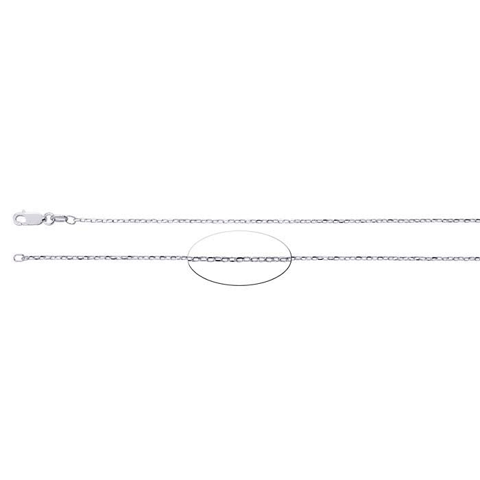 Tarjoten klassisen, tyylikkään ilmeen, tämä sterling-hopeinen timanttileikattu rolo-ketju on korujen valmistuksen perusta ja täydentää monenlaisia malleja. Rolo-ketjun lenkit on valmistettu litteästä tai puolipyöreästä langasta siten, että jokainen lenkki on leveämpi kuin langan paksuus. Lenkkien muoto voi olla pyöreä tai soikea; tämän ketjun lenkit ovat soikeita. Timanttileikatut versiot sisältävät lenkkeihin tarkasti timanttikärkisillä työkaluilla leikattuja fasetteja. Fasetit kiillotetaan sitten korostamaan lenkkien pintojen valonheijastavia ominaisuuksia. Tämä ketju on päällystetty hienolla hopealla varmistaakseen kirkkaan valkoisen värin ja suojan tummumista vastaan.