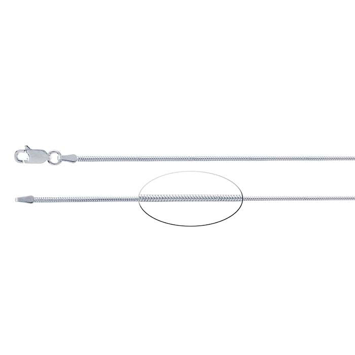 Tämä siro, pyöreä, saumaton sterlinghopeinen käärmeketju on erinomainen valinta malleihin, jotka vaativat tukevaa kantavuutta mutta hienostunutta ulkonäköä. Ketju on päällystetty hienolla hopealla kirkkaan valkoisen värin varmistamiseksi ja tummumisen estämiseksi.