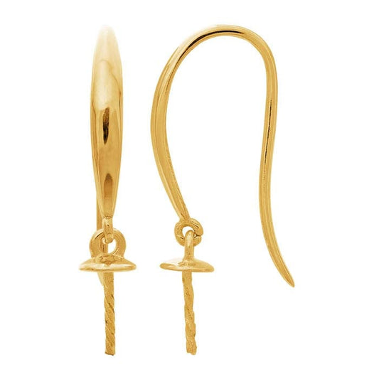 Fil d'oreille en or jaune 14 carats avec montage pour perle