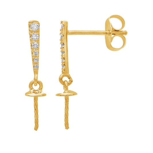 Boucles d'oreilles à tige en or jaune 14 carats serties de diamants avec tige en perle