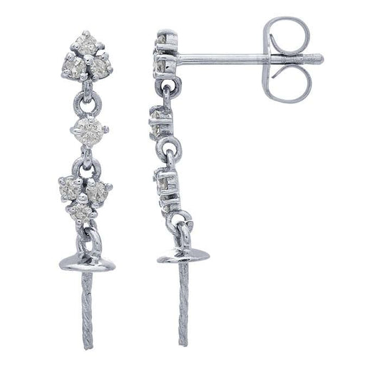 Boucles d'oreilles pendantes à tige en or blanc 14 carats avec grappe de diamants sertis et tige en perle