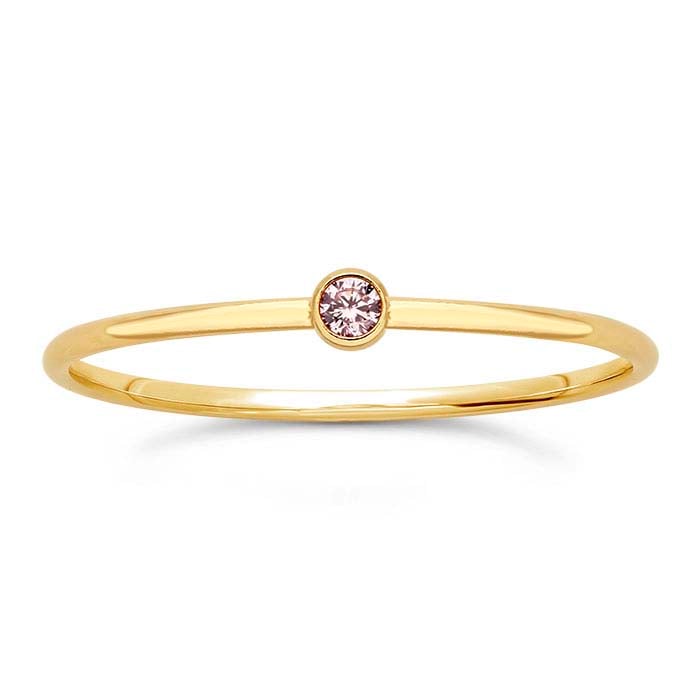 Cette bague en or jaune 14/20 rempli présente un oxyde de zirconium rose rond de 2 mm en sertissage clos. Elle est attrayante en tant qu'accessoire autonome ou empilée en combinaison avec d'autres bagues. Offrez aux clients une variété de styles de bagues empilables à mélanger et assortir, et encouragez-les à créer leurs propres designs interchangeables. Cette bague est plaquée en or jaune 14 carats pour garantir une couleur uniforme.