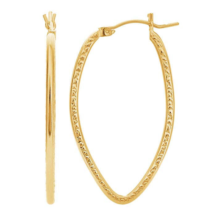 Boucles d'oreilles créoles plates marquise texturées en or jaune rempli 14/20