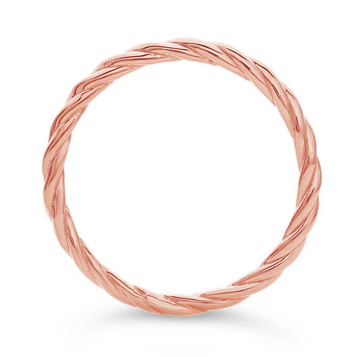 Cette alliance éternelle en or rose 14 carats présente une finition brillante avec un design délicatement torsadé. La bague est un modèle idéal pour des arrangements de bagues empilées. Proposez aux clients une variété de styles de bagues empilables à combiner, et encouragez-les à créer leurs propres designs modulables.