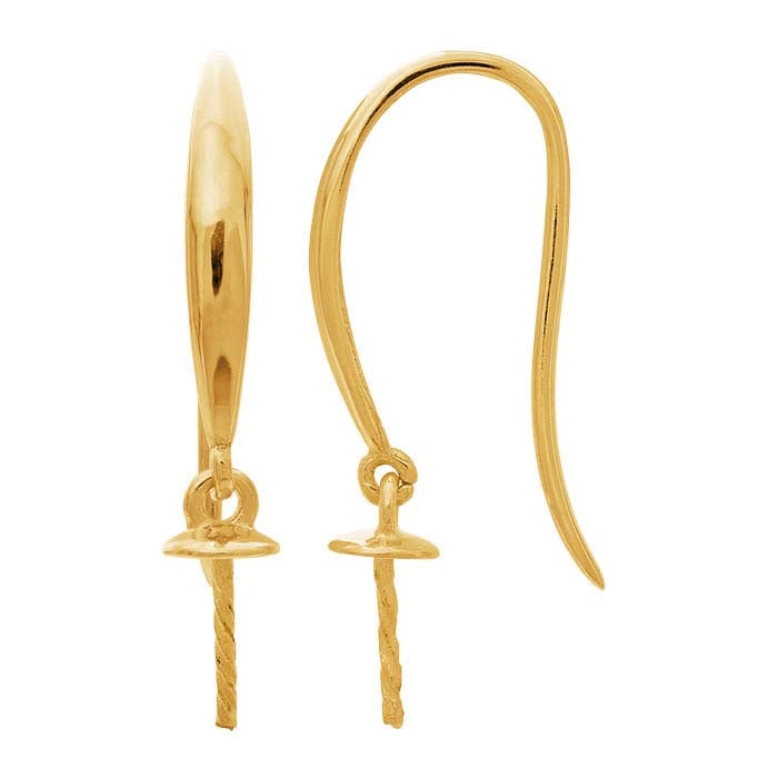 Ce fil d'oreille en or jaune 14 carats est doté d'un support de perle avec coupelle et tige. Utilisez de l'époxy pour bijoutier afin de fixer toute perle ou boule de gemme à moitié percée pour finaliser le design. Parfois appelés fils français ou crochets de berger, ce style classique est facile à travailler et simple à porter—idéal pour une variété de créations.