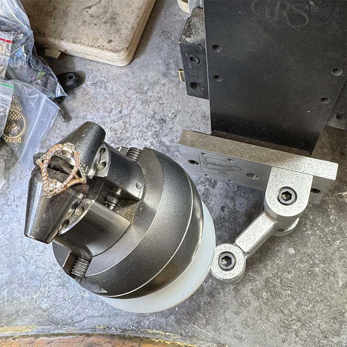 Precision crafted specially for jewelry artists, this Articular Arm® (A3) offers a fully adjustable multi-axis arm with three pivot points that provides complete control of your workpiece. It securely holds your GRS® MicroBlock® and most industry-standard vises (available separately) and is a great partner for working under a microscope during stone setting, engraving, and other intricate tasks. The arm allows natural hand movement while reducing hand fatigue, improving your workflow and helping you to work longer. This Articular Arm® is made from high-grade machined aluminum and stainless hardware with a durable powder-coated finish. It is shipped fully assembled and has a solid steel plate with non-slip rubber footing for maximum stability.