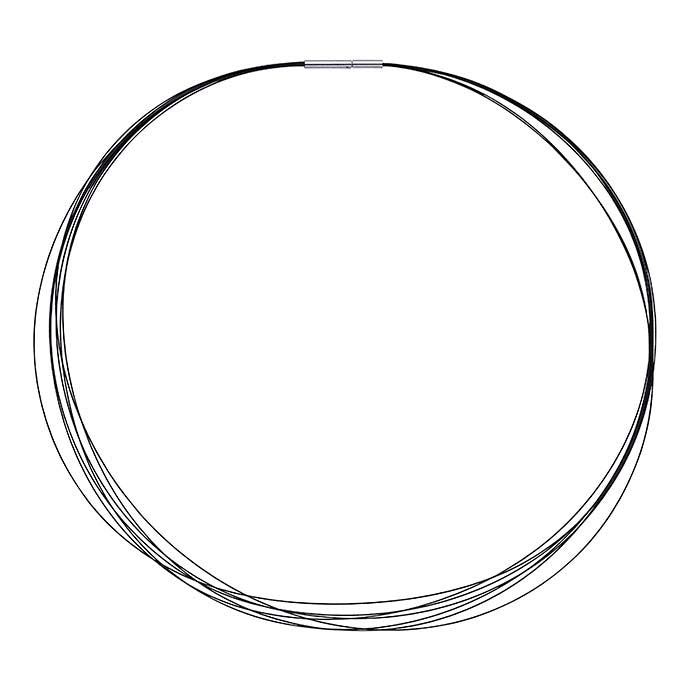 Ce câble de collier en acier inoxydable à sept brins présente l'aspect dynamique de fils de câble séparés (0,4 mm) réunis en un seul collier au niveau du fermoir. Proposez-le tel quel ou ajoutez un pendentif unificateur unique ou ajoutez un ou plusieurs charms à chaque brin individuellement pour créer un design unique. La finition noire ajoute un contraste attrayant aux pendentifs en argent sterling ou à d'autres éléments de design, ou complète une variété d'éléments sertis de pierres.