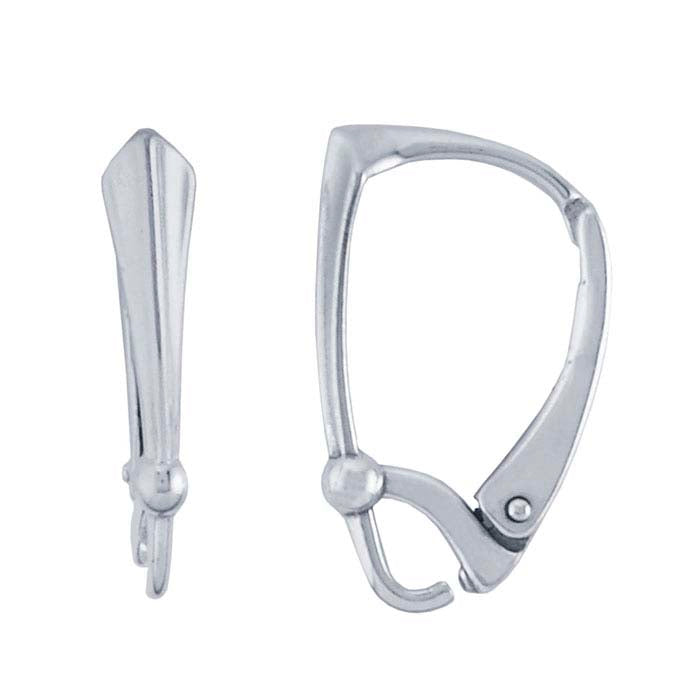This sterling silver lever-back ear wire features an art deco shield design and ball accent on the front; a roomy, open loop makes it easy to attach drops or dangles. The hinged closure helps protect against loss. A short length of open channel is perfectly sized to accommodate the wire. Simply insert the wire and close the lever over it to secure the earring in place.