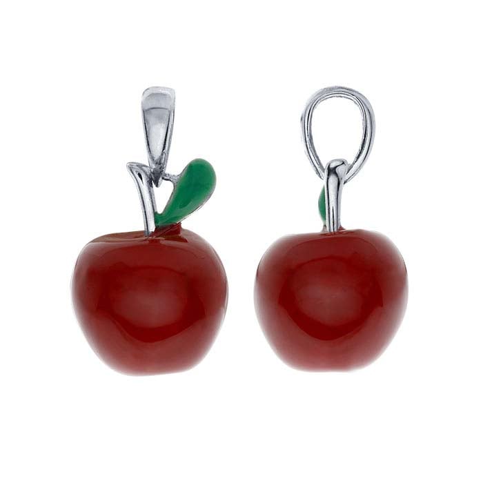 This sterling silver charm features a 3D red enameled heart design complete with a green leaf. The charm makes a great addition to a bracelet or themed design and works well as a simple drop for earrings. A rhodium plating ensures a durable, tarnish-resistant finish. This charm includes a tapered bail.