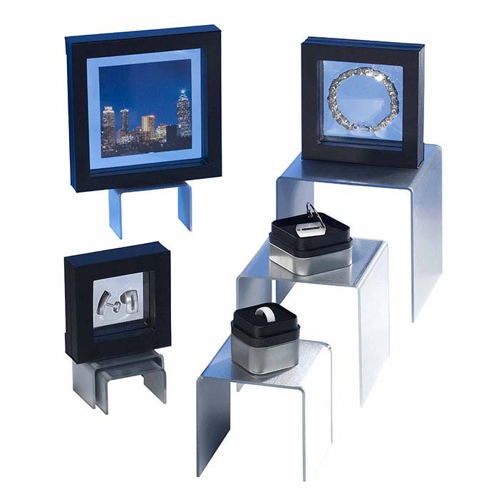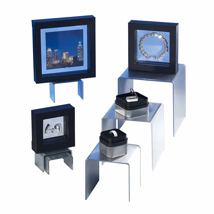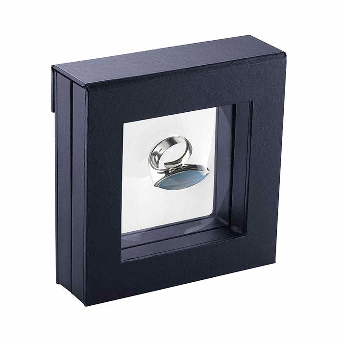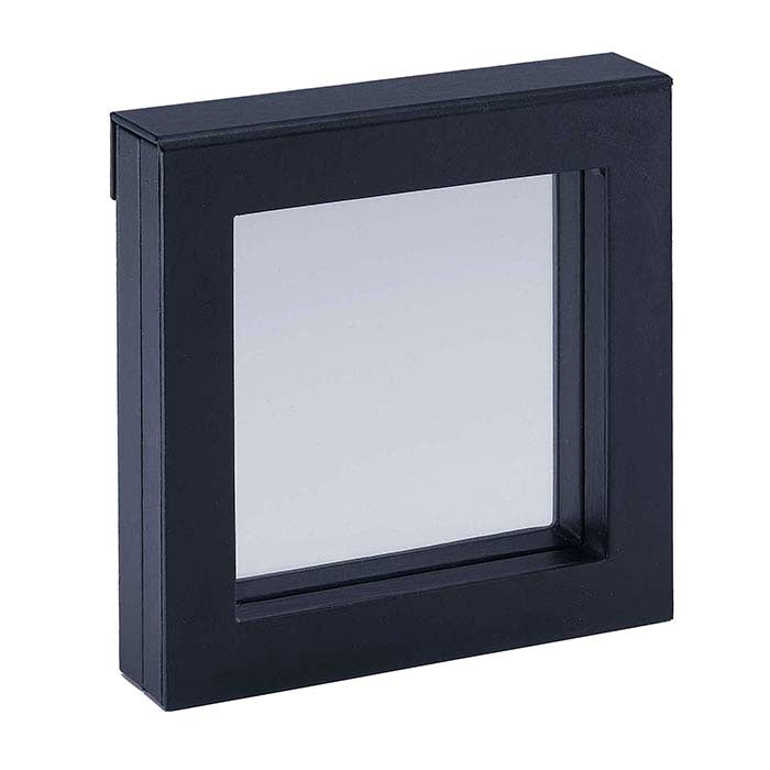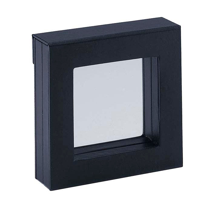 Cette boîte cadeau suspendue noire en 3D offre un moyen saisissant de présenter des bagues, pendentifs et breloques tout en permettant un accès facile aux bijoux à l'intérieur ; elle est également parfaite pour les photos ou autres souvenirs. La boîte en deux parties s'ouvre au centre, vous permettant, à vous ou à votre client, de placer presque n'importe quel bijou à l'intérieur. Une fine membrane plastique transparente et flexible est montée dans les deux moitiés de la boîte ; une fois fermées, les deux membranes plastiques maintiennent vos bijoux en place, leur donnant l'apparence de flotter à l'intérieur de la boîte et offrant une visibilité sous tous les angles. Utilisez-la comme présentoir dans vos vitrines ou présentoirs, ou proposez-la comme article complémentaire ou cadeau avec achat. La boîte est recouverte de similicuir noir ; la fenêtre en plastique clair et flexible mesure 4" x 4". Une bande magnétique solide maintient la boîte fermée en toute sécurité. Faites estampiller à chaud votre boîte cadeau avec le nom ou le logo de votre entreprise, vous assurant une visibilité durable bien après la vente du bijou.