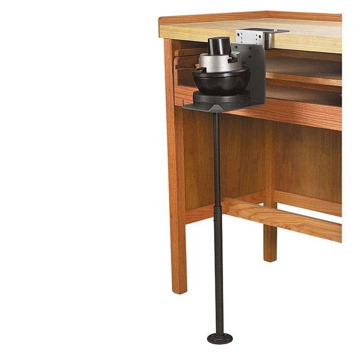 Ce support d'étagère pour étau à bloc GRS® offre stabilité et réduit les vibrations lors de l'utilisation d'une étagère à bloc (vendue séparément). Le dessus magnétique assure une prise ferme sur l'étagère. Réglable de 18" à 35" (457,2–889 mm), du sol au sommet du support.