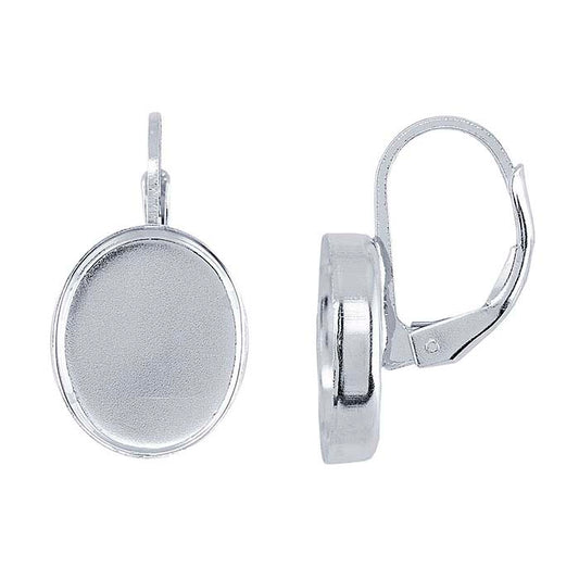 Sterling Silver Lever-Back 10 x 8mm Oval Cabochon Ear Wire Mounting