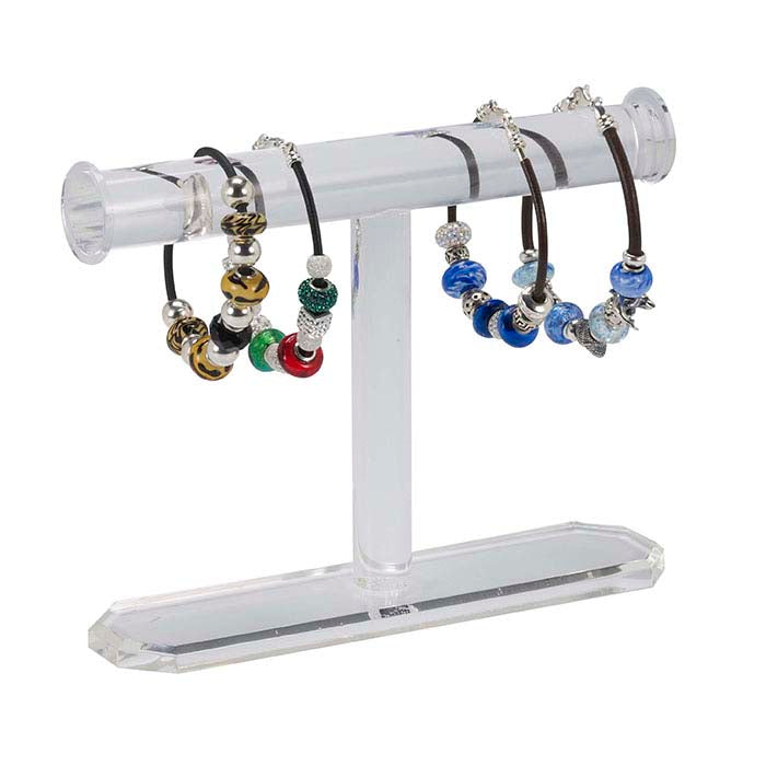הסרגל העגול בתצוגת הצמידים האקרילית השקופה הזו אידיאלי להצגת צמידים מרובים מחוטים, בסגנון שרשרת או צמידים קשיחים. התצוגה האיכותית קלה ויציבה, עם מראה מודרני ונקי שמבליט את התכשיטים. הקצוות המורחבים של הסרגל העגול מונעים מהתכשיטים להחליק כשהתצוגה מורמת ומוזזת. התצוגה עשויה מאקריל שקוף עם בסיס בעל קצה מסולסל.