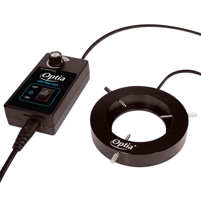 האירו כל פן של עבודתכם מבלי ליצור צללים מסיחים עם מנורת Optia® זו. גוף התאורה העגול LED בעל בהירות גבוהה במיוחד (2,500 לומן) כולל מתג הפעלה/כיבוי נוח ומספק אור בספקטרום טבעי (6,400 קלווין) עם עוצמה מתכווננת. שלושה חוטים מתכווננים מאפשרים חיבור קל למיקרוסקופים של Leica® ו-Meiji®.