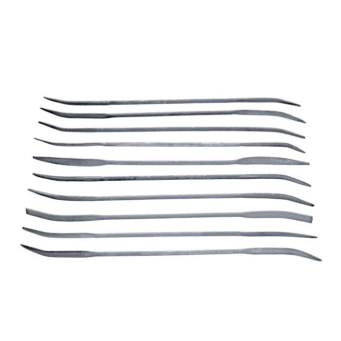 ערכת כלכלית זו של פיילים ריפלר כוללת עשרה פיילים במגוון צורות ופרופילים דו-קצוות, הממקסמים את שטח החיתוך הזמין של הפיילים; הערכה מבטיחה שיש לך את צורת הפייל הדרושה לכל עיצובי התכשיטים שלך. השתמש בפיילים אלה לעיצוב ויצירת קצוות וקונטורים ולשיפור אזורים שקשה להגיע אליהם ולמשטחים מעוקלים. הערכה כוללת תיק נשיאה רך מויניל.