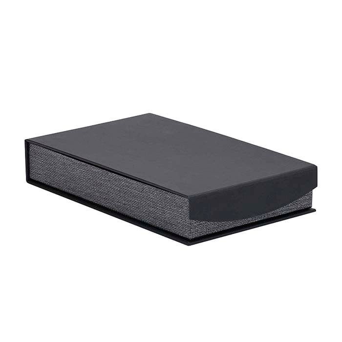 קופסת השרשרת האפורה והשחורה "Silver Night" מתאימה לשרשרת או לשרשרת חוליות. תבנית הצבע הדו-גונית העדינה והסגירה המגנטית עם חזית מעוקלת מעניקים לקופסה מראה יוקרתי ומושך עין. הוסיפו סרט קישוט, עטיפת מתנה או פפיון (נמכרים בנפרד) להתאמה אישית של הקופסה. התושבת כוללת לוגים שטוחים ומכוסים שמחזיקים את השרשרת או החוט להצגה מקצועית, וטאב משיכה מסאטן שמקל על הוצאת התושבת מהקופסה מבלי לעוות או לפגוע בה. נייר שחור חלק עם מראה ומגע של עור מלאכותי מכסה את החלק העליון והתחתון של הקופסה; הצדדים מכוסים בנייר אפור עם מרקם גרגירי ומבריק מתכתי. נייר שחור מכסה את פנים המכסה; קטיפה שחורה מרפדת את הצדדים הפנימיים של הקופסה. זמש שחור מכסה את התושבת הקצפית.