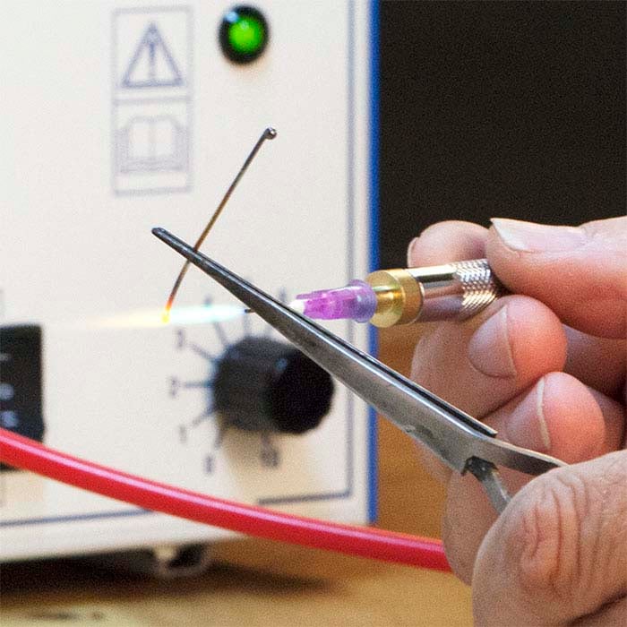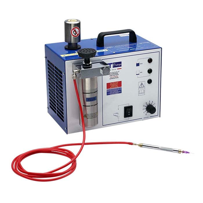 הלחמה עם כוח המיוצר על ידי מערכת ההלחמה במימן ET Hydrogen עם לפיד יחיד היא אלטרנטיבה מצוינת לשימוש במיכלי דלק וחמצן בלחץ בחנות שלכם! מערכת מתקדמת זו, שתוכננה לענות על מגוון צרכי צורפי תכשיטים, בטוחה מאוד וקלה לשימוש ומודלקת באמצעות מנגנון כיבוי פשוט של דחיפה ומשיכה. הלהבה שלה יבשה מאוד (ללא עיבוי אדי מים) וללא התזות. ידית הלפיד קלה ומנוהלת בקלות—אידיאלית לעבודה עדינה ולמושבים ארוכים של עבודה. בקרות ויזואליות שומרות על מודעות לרמות התמיסה ורמות הכוח בזמן העבודה ומאפשרות להגדיר את הכוח הדרוש לכל משימת הלחמה, ריתוך וברזול. עם להבה המתכווננת לדקויות מדויקות, מערכת זו מתמודדת גם עם עבודות תיקון ועיצוב עדינות יותר. כל זאת במערכת החוסכת מקום—שטחה התפוס הוא מינימלי, מה שהופך אותה לאידיאלית לכל חנות, בכל מקום.