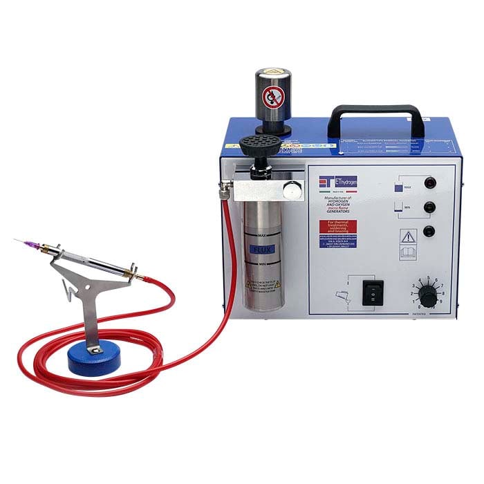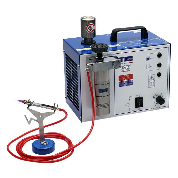 מערכת זו מייצרת אנרגיה על ידי אלקטרוליזה של אטומי מימן וחמצן מתמיסת אלקטרוליט (הכימיקלים אינם כלולים), ויוצרת דלק מימן/חמצן בטוח, נקי וכלכלי יותר. גז הדלק המיוצר בתגובה הקטליטית הזו יעיל מאוד עם היתרון הנוסף של היותו דלק בוער נקי ללא פליטת CO(2), ללא חמצון וללא עיבוי. גם תמיסת האלקטרוליט וגם תמיסת הפלקס הנדרשת מעורבבות לפי הצורך על ידי המפעיל. תמיסת האלקטרוליט מספיקה לשימוש של עד שנה לפני הצורך במילוי מחדש; תמיסת הפלקס מעורבבת גם היא לפי הצורך אך דורשת מילוי תכוף יותר, בערך כל 6–8 שעות של הלחמה בעוצמה מקסימלית. ערבבו את האלקטרוליט (500232) עם מים מונעים מינרלים, בהתאם להוראות המצורפות לאלקטרוליט. ערבבו את הפלקס עם מתיל אלכוהול, בהתאם להוראות המצורפות לפלקס.