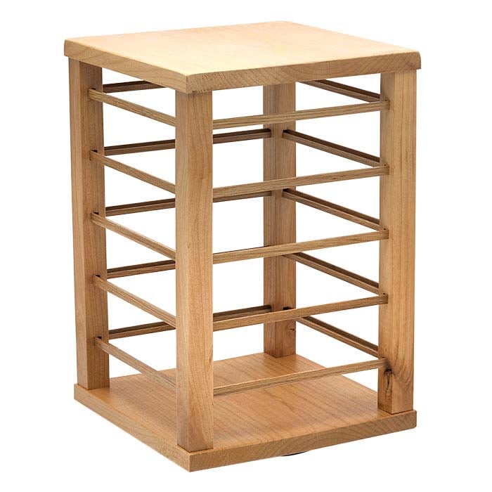 תצוגה מסתובבת זו, עשויה מעץ אלדר מלא חזק ואטרקטיבי, מציגה מבחר רחב של עגילים ומאפשרת ללקוחותיכם לדפדף בקלות באוסף שלכם. התצוגה בעלת ארבעה צדדים כוללת חמישה מדפי פלסטיק שקופים בכל צד המרוחקים זה מזה ב-2 אינץ'; כל התצוגה מחזיקה 160 כרטיסים בגודל 1 אינץ' או 80 כרטיסים בגודל 2 אינץ'. עץ האלון גמור בלכה שקופה.