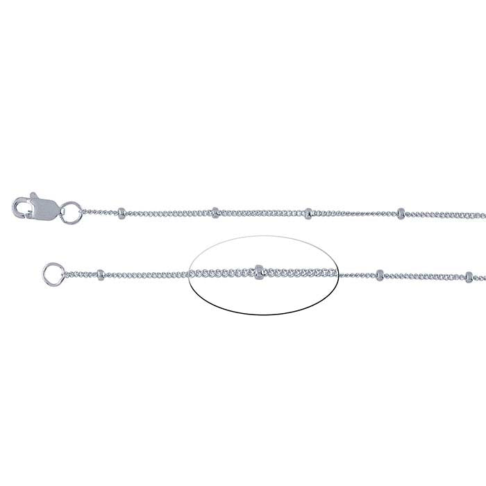 שרשרת קירב בעובי 1 מ"מ מכסף סטרלינג עם חרוזים בעובי 1.9 מ"מ