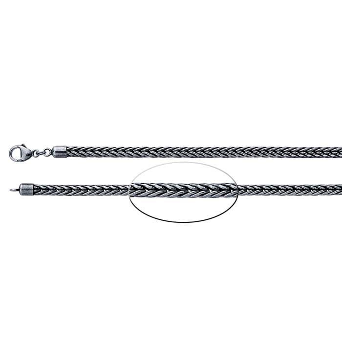 שרשרת פוקסטייל עגולה מחוט כסף סטרלינג מחומצן בקוטר 4.3 מ"מ