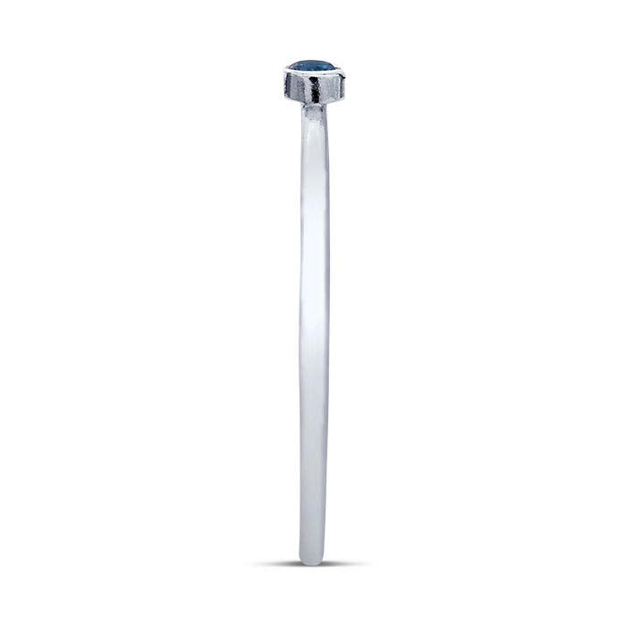 This sterling silver ring features a single 2mm aqua-blue round CZ set at the center of the ring. It looks great alone or stacked with multiple rings for a more dramatic look. Offer a wide selection of stackable rings that customers can choose from to create an individual, changeable look.