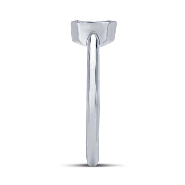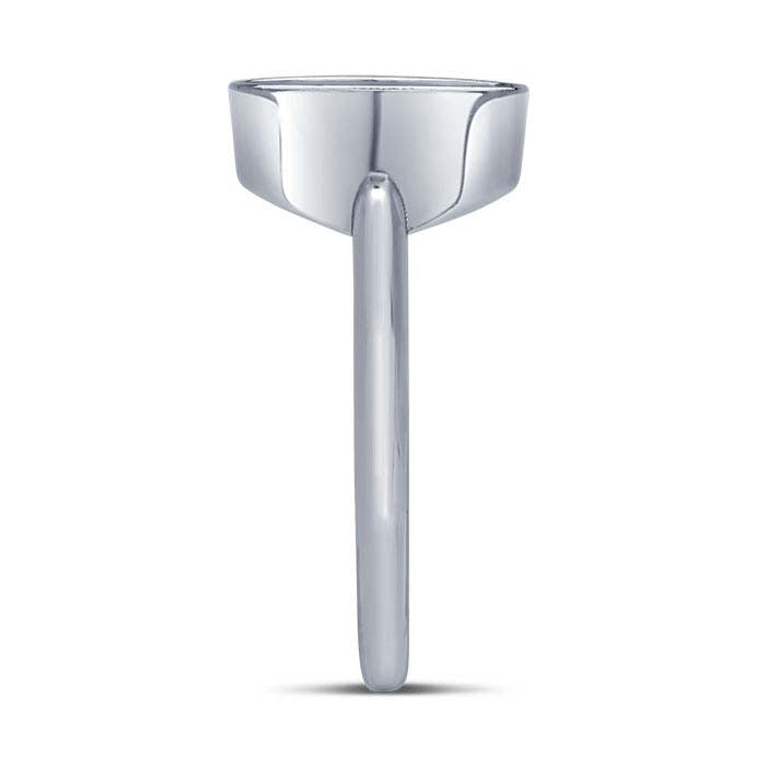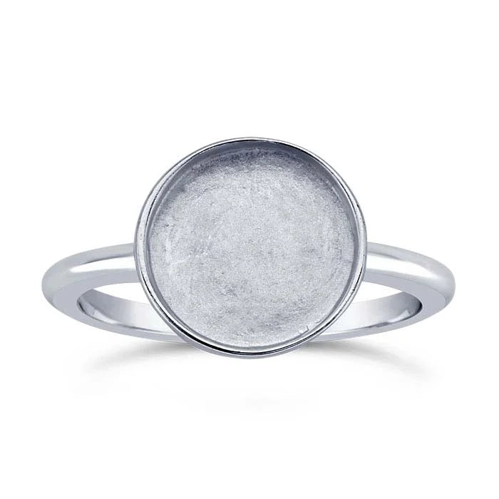 This sterling silver ring mounting features a bezel mounting that accommodates one 10mm round cabochon. The shoulders rise to form a subtle ridge, guiding your eye to the center mounting. Use jeweler's epoxy or traditional bezel techniques to securely set the stone. The ring has a bright finish and looks great when worn alone or when stacked with other styles of rings.