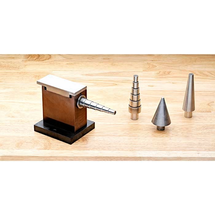 סדן רב-תכליתי זה של Swanstrom מציע משטח עבודה אידיאלי למשימות עיצוב קטנות יותר. הוא מספק משטח עליון שטוח מתחלף ומנדרלים מתחלפים המתוכננים למגוון צרכי עיצוב. הסדן אידיאלי לעיצוב טבעות וצמידים דקים ולעיצוב רכיבים מעוקלים לטיפות או תלויים. כלולים שני מנדרלים בצורת מדרגות ושני מנדרלים בצורת חרוט.