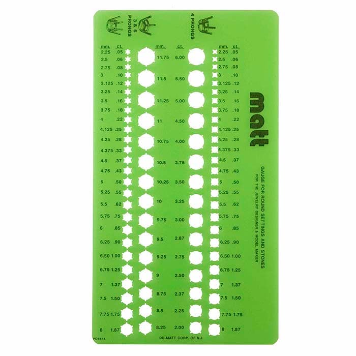 התבנית הזו כוללת חיתוכים עגולים עם 4 ו-6 שיניים המסייעים לך ליצור עיצובים חלקים ועקביים שמשלבים אבנים עגולות. תבנית זו זמינה גם בערכה עם תבנית לצורות מיוחדות (אליפסה, אגס ומרקיז) וספרו של אדולפו מטיאלו "איך ליצור מסגרות בחוט מתכת ושעווה".