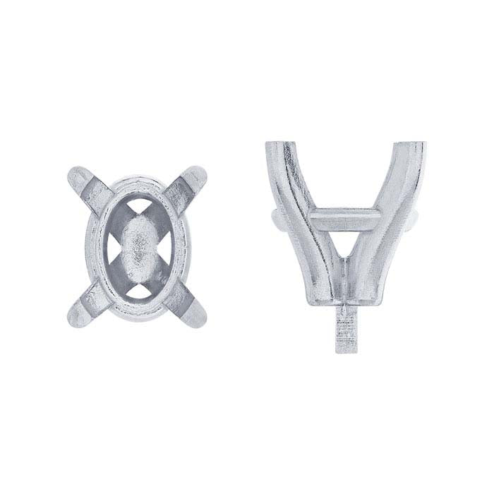 14K זהב לבן 9x7 מ"מ סלסלת אליפסה עם 4 שיניים ומסמר
