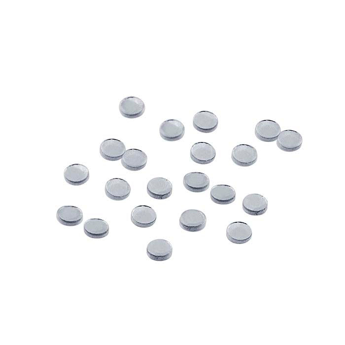 Easily re-tip worn prongs to protect against losing precious stones with Redi-Prongs®. These little discs are precisely sized and have a dab of pre-applied solder that simplifies the re-tipping task significantly. Apply a thin layer of soldering flux to the underside of a Redi-Prongs® tip, then set it on the prong. Apply heat until pre-applied solder flows onto the prong. Or, tack Redi-Prongs into place with the Vac-Tool then solder to secure. This set includes 100 14-karat white Redi-Prongs #30 tips, appropriate for prongs that hold round diamonds from 0.01–0.2 ct. in size.
