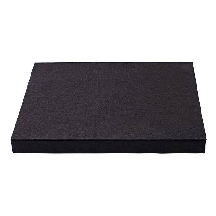 השתמשו במרומם השחור הפשוט הזה כדי להרים פריטים או מעמדים נבחרים, ולספק גיוון ויזואלי בתצוגה של פריטי תכשיטים בגודל דומה. הגובה הנוסף מושך תשומת לב ומוסיף מרקם לסידורי תצוגה גדולים או מורכבים יותר. הצורה השטוחה והמלבנית של המרומם הזה הופכת אותו לשימושי גם כתצוגה על גבי תיבת תצוגה; העבירו פריטים בודדים מתוך התיבה אל המרומם לבחינה מקרוב של הלקוח. הבד בצבע שחור ובעל מרקם טבעי ועדין שהופך אותו לרקע אטרקטיבי לכל סגנון תכשיטים. פשתן צבוע שחור מכסה צורה מקרטון ופוליסטירן.