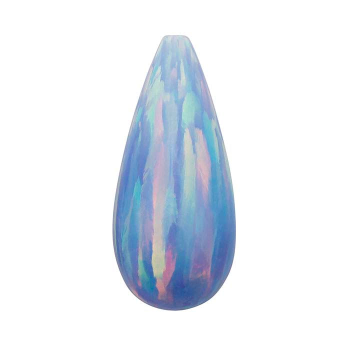 This affordable Kyocera Cornflower Blue simulated opal drop features an elongated teardrop shape with a vibrant “play of color,” giving it a unique light-reflecting quality that enhances any earring or necklace design. Use the bead individually to create an elegant earring drop or combine it with other colors and styles of gemstone or pearl beads to create more complex pendant and necklace designs. Use jeweler’s epoxy to secure the drop onto a peg.