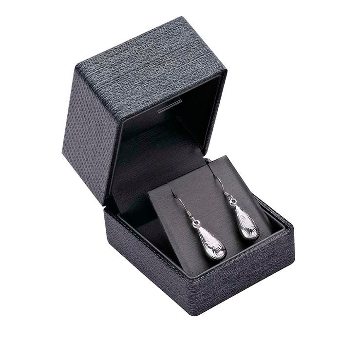 קופסת מתנה לאריזת עגילי סרט פרימיום מטאלי כסף לילה
