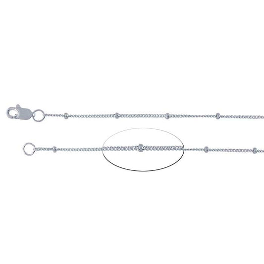 स्टर्लिंग सिल्वर 1mm कर्ब चेन 1.9mm मोतियों के साथ, फुट के हिसाब से