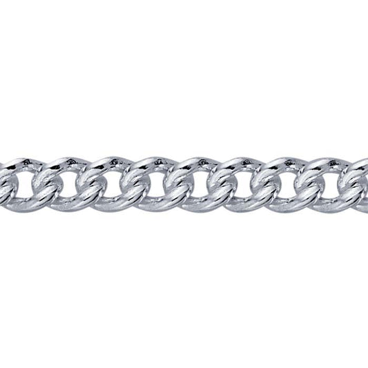 स्टर्लिंग सिल्वर 3.8mm बेवेल्ड कर्ब चेन, फुट के हिसाब से