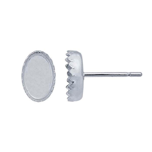 स्टर्लिंग सिल्वर 6 x 4mm अंडाकार सेर्रेटेड कैबोचॉन पोस्ट इयररिंग माउंटिंग