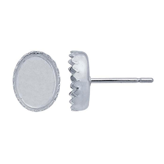 स्टर्लिंग सिल्वर 8 x 6mm ओवल सेरेटेड कैबोचॉन पोस्ट इयररिंग माउंटिंग