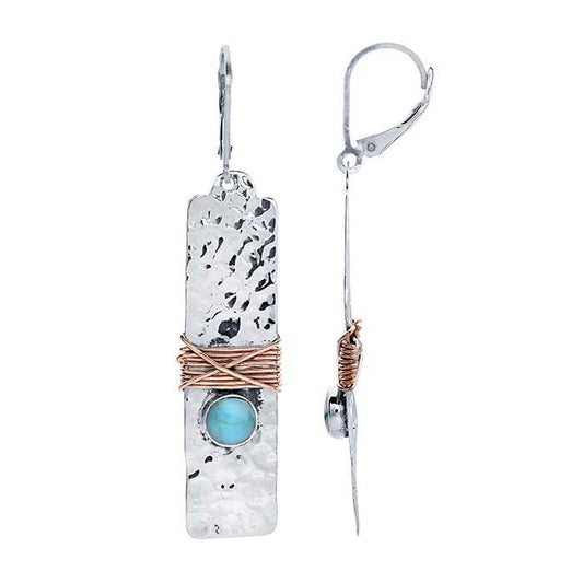 स्टर्लिंग सिल्वर हथौड़ा लगे हुए झुमके नकली टरक्वॉइज कैबोशॉन के साथ