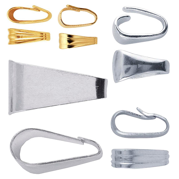 Jewelry bails, available in a wide range of styles and metal types - including gold and sterling silver - add both functionality and visual appeal to your designs. Designed for versatility and personalization, enhancers make it easy to attach pendants, charms, or drops to finished necklaces or bead strands, opening the door to endless design variations.
